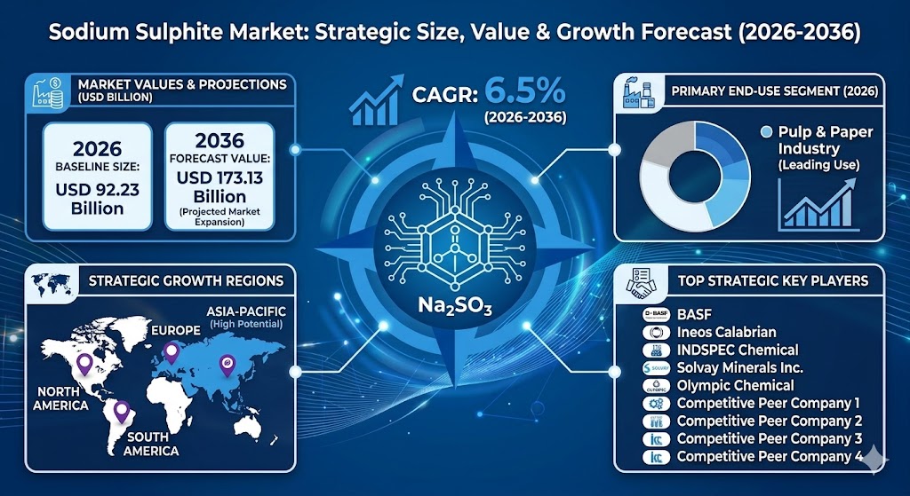 ROCKVILLE, MD, UNITED STATES, April 13, 2026 /EINPresswire.com/ -- According to Fact MR, latest analysis, the South Korea sodium sulphite market is entering a high-growth phase, aligned with global expansion trends. The global market was valued at USD 86.6 billion in 2025 and is projected to reach USD 92.23 billion in 2026, ultimately expanding to USD 173.13 billion by 2036 at a CAGR of 6.5%. Within this landscape, South Korea is outperforming with a projected CAGR of 6.7% through 2036.The country’s industrial ecosystem—spanning water treatment, pulp & paper, and advanced manufacturing—is driving accelerated procurement of sodium sulphite. Rising demand for oxygen scavengers in boiler systems and dechlorination agents in municipal water infrastructure is reshaping supply chain priorities.